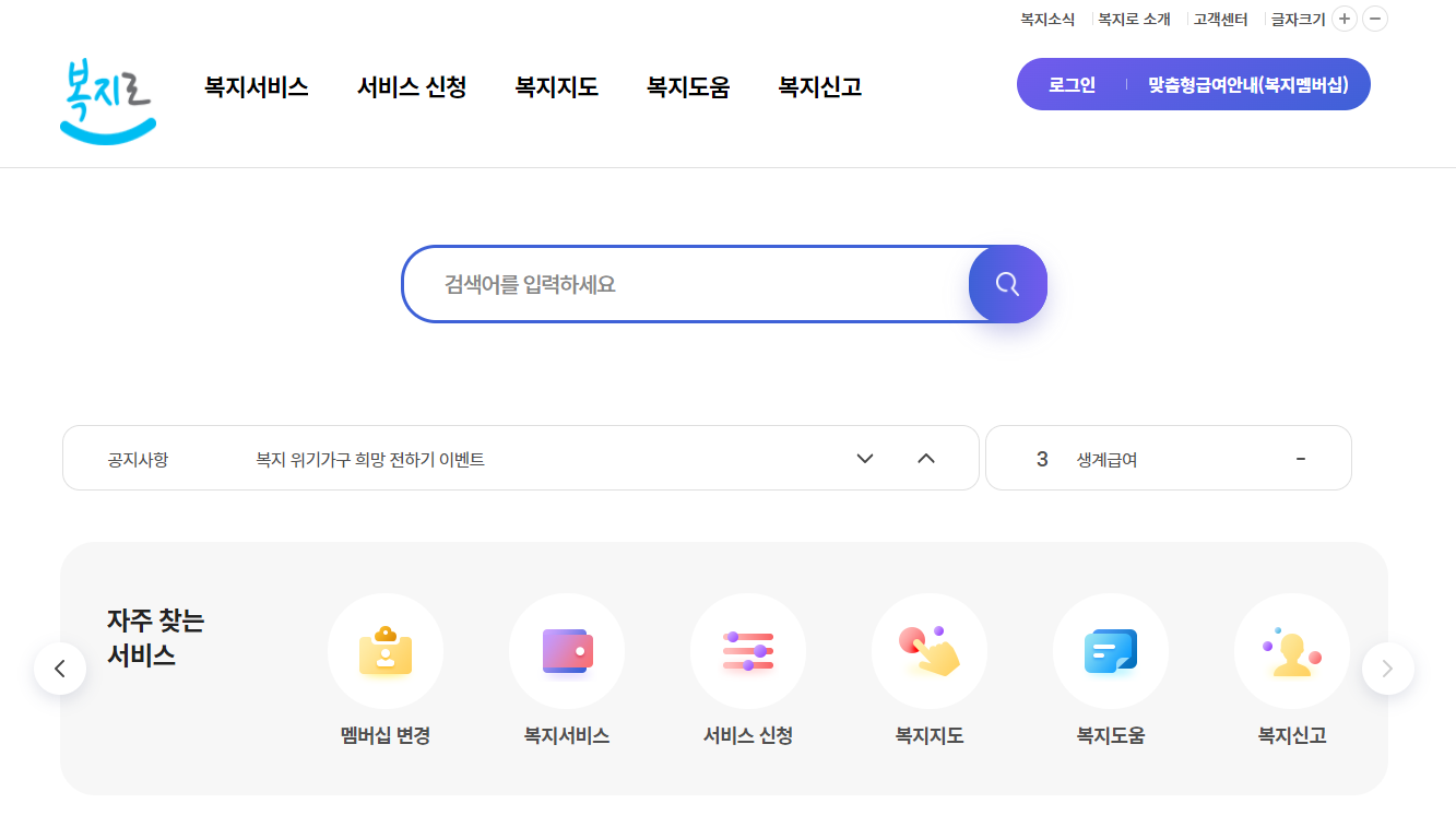 - 온라인 신청 : 복지로 홈페이지에서 로그인 후 신청 가능합니다. 온라인 신청을 하는게 어렵고 궁금한 부분이 있다면 주민센터에 전화를 하셔서 물어보는 것도 좋습니다.