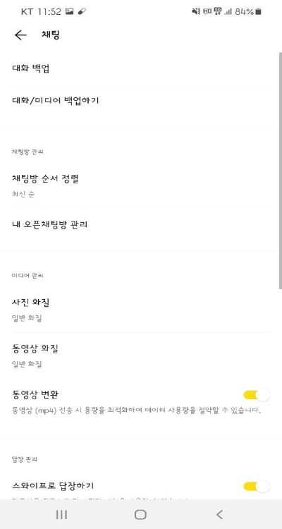 ※ 여기서 중요한 포인트를 집고 넘어가면, [대화 백업] 기능을