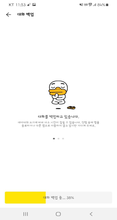 대화 백업을 진행하고 있습니다. 용량에 따라서 다소 시간이 걸릴 수 있습니다.